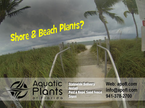 Plants for sale include: sea oats, saw grass, sand cordgrass, red mangroves, love grass, panic grass, muhly grass, spikerush, pickerelweed, and more. Our inventory includes fresh water herbaceous and salt-tolerant plants, native grasses, shrubs, ferns, trees and wildflowers to restore, rebuild and replenish beach dunes, wetlands, marshes and retention ponds for environmental and beautification projects.